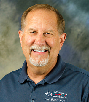 Dr. Bill Burke followed his father, Dr. J.W. Burke, into Family Practice. Having lived in Keller since 1980, while attending medical school, he saw a need for medical care in a growing city. He can be seen routinely out on the Keller trail system running or riding his bike. Dr. Burke and his wife Beverly have three grown children and seven grandchildren.